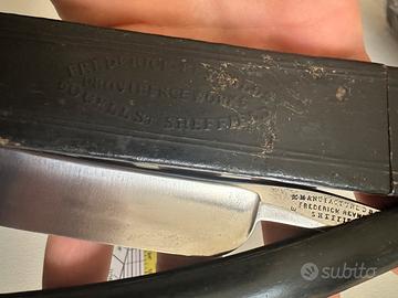 Vendo per sfoltimento rasoio sheffield marchio Frederick Reynolds,prestigioso marchio sinonimo di qualità.rasoio in perfetto stato compresa la geometria e il manico in materiale naturale ossia corno bruno,chiusura cemtrata ma da accompagnare,gia affilato su giapponesi regala un taglio accezzionale a corredo scatola originale.sanificato e pronto al uso…per qualsiasi domanda contattatemi