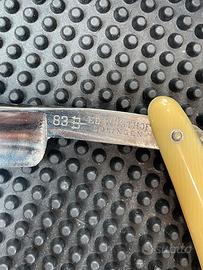 Vendo bellissimo rasoio a mano libera ( straight razor) tridente 83, acciaio solingen con scatola non originale. Rasoio ben tenuto e pronto per la rasatura. Affilato su pietre naturali
