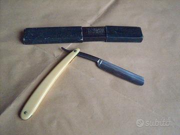 La seguente scritta: This razor is guaranteed to be handforged & hand ground, is Is conscientiously tested & set ready for use to give entire satisfaction (Questo rasoio è garantito per essere forgiato e lavorato a mano, è accuratamente testato e pronto all'uso per dare piena soddisfazione)