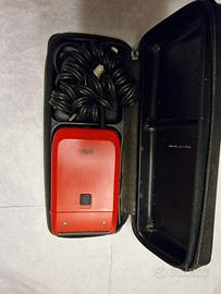 Rasoio elettrico da uomo marchio Braun azienda tedesca fondata nel 1921 custodia da viaggio nera contiene rasoio di colore rosso con cavo di alimentazione e spazzolina per la pulizia ancora funzionante