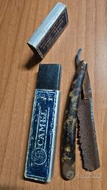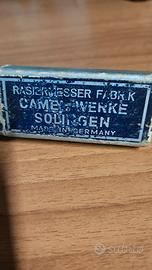 Antico rasoio da barba Camel Solingen, in scatola originale. Sia la scatola che il rasoio presentano segni del tempo.