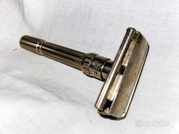 Iconico rasoio di sicurezza Gillette "Slim Adjustable", un classico della rasatura tradizionale americana. Questo modello, prodotto tra il 1961 e il 1968, è famoso per la sua affidabilità e la testina regolabile che permette di scegliere il grado di "aggressività" della lama. 🧐 L'oggetto è destinato a: • antiquari; • collezionisti; • chi voglia cimentarsi nella rasatura classica con stile di lusso accessibile. ✅ Caratteristiche • Meccanismo TTO (Twist to Open): Apertura "a farfalla" per inserire la lama ruotando la base del manico. Il meccanismo funziona correttamente. • Ghiera Regolabile: Selettore numerato da 1 a 9 che permette di regolare l'inclinazione della lama (1 per una rasatura dolce, 9 per una più profonda). • Materiale: Ottone nichelato, robusto e bilanciato. • Design: Manico con zigrinatura antiscivolo per una presa sicura anche con le mani bagnate. 📍 Dettagli informativi Sotto alla testina è impresso il date-code "J2" (vedi foto) che contrassegna la data di produzione del rasoio, nel secondo trimestre aprile/giugno del 1964. 💎 Stato di conservazione e condizioni Il rasoio è in condizioni vintage più che buone, perfettamente funzionante in ogni sua parte. Presenta una naturale patina del tempo (visibile nelle foto) che può essere rimossa con una pulizia approfondita o una lucidatura specifica per riportarlo allo splendore originale. Il meccanismo di apertura e la ghiera di regolazione si muovono fluidamente. 💶 Valore • valore di stima (stato attuale): €70 • prezzo richiesto: €50 (30% di sconto sul valore stimato) Si valutano offerte che obiettivamente non oltraggino la dignità dell'oggetto.
