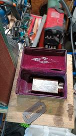 Rasoio di sicurezza vintage, marca Gillette, made in England compreso di astuccio e relativo portalame.