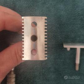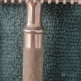 vendo rasoio di sicurezza gillette old type con la sua scatola. rasoio e scatola in buone condizioni come da foto. difetti piu evidenti un dentino piegato e una leggera crepa appena visibile sul manico. entrambi i dettagli evidenziati in foto. disponibile per ulteriori foto.