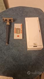 rasoio vintage super slim twist con scatola e dispenser lamette silver platine. codice rasoio N3. Rasoio in buono stato come da foto. il dispenser lamette non è sigillato.