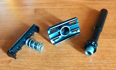 Safety Razor REGOLABILE design Futur. Regolazione di precisione a 6 step di profondità. Perfetto nelle rifiniture e nella cura dei dettagli, è completamente smontabile per una pulizia profonda dello strumento, la procedura è molto semplice. Nuovo, mai utilizzato, completo di confezione originale. Il kit comprende scatola di 5 lamette Platinum in acciaio svedese.