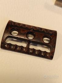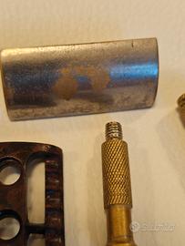 Rasoio di sicurezza da viaggio smontabile. Manico ottone porta lametta in bachelite integro, testa nichelata con segni di uso. Senza marchio. Per ricerca... Gillette Fatip Tris Merkur Mulcuto Wilkinson Funken Slim Fat Boy Muhle