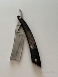 Rasoio strepitoso del Maker Ulrik Beyer di KoraatKnives. Si tratta di un modello near wedge 8/8 con Hamon - manico in corno di Bufalo nero striato, spaziatore e pin in rame stile Sheffield. Preso a Novembre scorso.