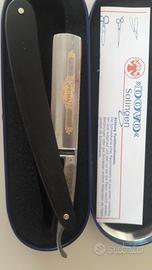 Vendo rasoio mano libera Dovo nuovo, lama 5/8 ancora incerata, manico ebano, dorso placcato oro, con scatola e garanzia.