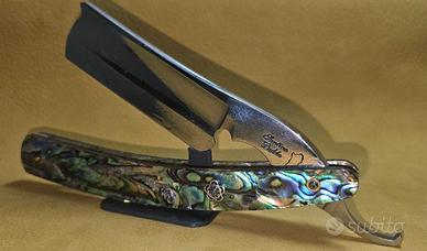 Lama in acciaio alcarbonio forgiata da 8/8 lunga 7,5 cm con manicatura in ABALONE.