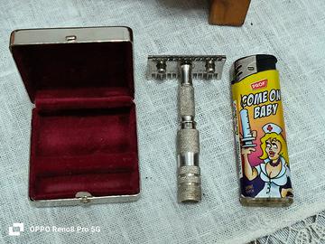 come da foto vendo rasoio da viaggio vintage, c.a.v.a made in Italy , in ottime condizioni perfettamente funzionante con scatolina , il rasoio ha il manico placcato argento, vendo a 90 euro
