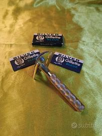 rasoio in metallo con lamette e scatolina come da foto ,rasoio vintage mai usato,"soluna" è lamette Gillette , vendo lotto come foto € 15.00