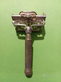 Cedo il rasoio in oggetto per cessata collezione, mod. 321115/1930 completo di 3 lame hollow ground dedicate, scatola porta lamette e flyers pubblicitario. Box non originale.