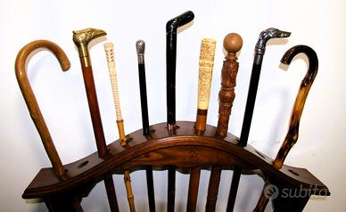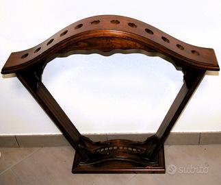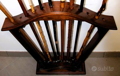 Rastrelliera in legno per bastoni da passeggio composta da 12 alloggiamenti disponibili con fori.