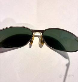 Ray Ban Bausch&Lomb made in USA in perfette condizioni. Larghezza tra le cerniere 125mm. Frame: Gunmetal (grigio metallizzato opaco) • Lenti: verdi (G-15) con firma B&L incisa. Larghezza lenti circa 60 mm • Stile: Wrap/sportivo, full coverage, unisex (uomo/donna), con braccia nere • coordinate. • Epoca: Vintage, anni '70-'90 (Bausch & Lomb era il produttore originale, quindi sono considerati "veri" Ray-Ban classici, più robusti e di qualità superiore rispetto ai moderni Luxottica).