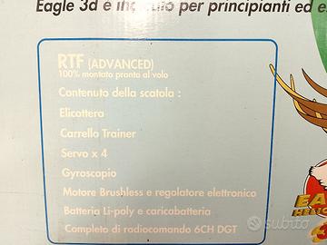 Modello RC elicottero SABATTINI EAGLE 3d Ottimo per principianti di evoluzioni 3d. Albero di coda e pale principali da sostituire.