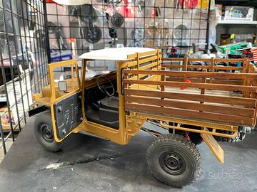 Rc scaler 1/14 completo e opzionato marca Wbl. Ha tutta la meccanica sostituita con optional in metallo, ammortizzatori ad olio, cardani in metallo, tutti i link in metallo, ponti in metallo con copertura differenziali in metallo rossa, sistema sonoro, due marce comandabili via radio, luci, retro cassone autocostruito con legno di balsa e dipinto color noce con sponda ribaltabile e radiocomando a volantino incluso. Se avete bisogno di informazioni chiedete pure ššš»