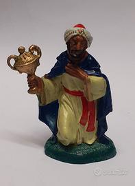 Statuina presepe, Re magio mulatto per presepe altezza effettiva 7,5cm. perchè genuflesso (venduto per presepe altezza 10cm) acquistato per errore, come nuovo. (Cod. prodotto: 1011405P - Peso: 46 gr)