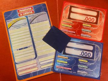 Reazione a catena, Ravensburger in edizione italiana. Condizioni ottime: La scatola è come nuova; I componenti ci sono tutti, tranne i 2 pennarelli, e in condizioni ottime; le carte sono tutte presenti.