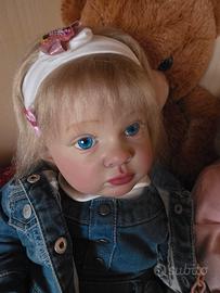 Bambola reborn 60cm circa appesantita con microsfere e polifil,capelli radicati a mano da me. Corpo in stoffa pesa circa 4 kg. Prezzo trattabile
