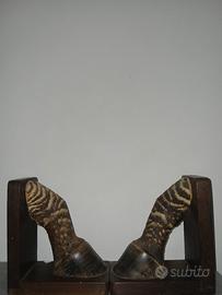 Coppia di reggilibri unici e rari, realizzati con veri zoccoli di zebra montati su basi in legno massiccio scuro. Un pezzo da collezione d'altri tempi, ideale per studi eleganti, librerie importanti o per amanti del genere Wunderkammer (camera delle meraviglie).