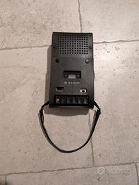 Vendo un Registratore a Cassette Portatile Sanyo Vintage, completo della sua rarissima custodia protettiva originale in pelle nera con tracolla. Un oggetto iconico per collezionisti, amanti del vintage e per chiunque voglia aggiungere un tocco retro unico al proprio arredamento. Il pacchetto include: Registratore a Cassette Sanyo: Di colore nero e argento, con design compatto e maniglia per il trasporto estraibile integrata. Custodia Protettiva Originale in Pelle: In ottime condizioni, con fodera interna nera felpata e pratica tracolla a cappio. Dettagli Visibili e Caratteristiche: Pannello di controllo con i classici sei pulsanti: Registrazione (con punto rosso), Riavvolgimento, Play, Avanzamento, Stop, Espulsione. Pannello superiore con griglia traforata in metallo argentato per l'altoparlante. Scomparto cassette con coperchio sollevato che mostra i mandrini interni (come da foto). Quadrante di controllo (forse volume/tono) con testo e la scritta "AC / DC POWER" stampata in bianco. Logo Sanyo argentato ben leggibile. Porta rotonda per auricolare. Alimentazione: Funziona sia con alimentazione AC (con cavo non incluso) che DC (batterie non testate).: L'oggetto è in buone condizioni estetiche generali per la sua età, ma presenta normali segni del tempo coerenti. Sulla griglia dell'altoparlante metallica del registratore è visibile una patina superficiale e una leggera ossidazione, che ne attestano l'originalità e il fascino retro (come mostrato nelle foto di dettaglio). La custodia in pelle è in ottime condizioni. L'oggetto NON È STATO TESTATO per il funzionamento e viene venduto nello stato in cui si trova, ideale per collezionisti, pezzi di scena o per amanti del restauro elettronico vintage ("Visto e Piaciuto").