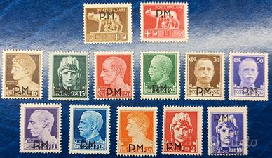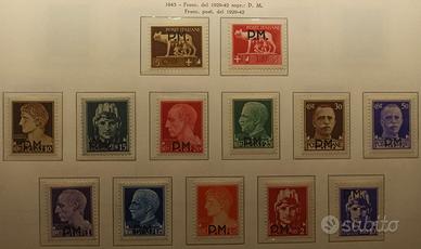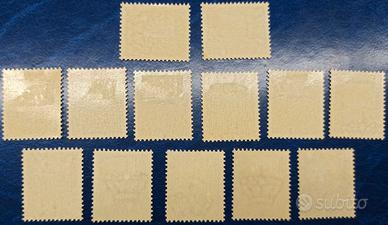 13 francobolli • Dent.14 blocco • Filigrana corona • Stampa: rotocalco • Stampato da: Officina carte valori Roma • Fogli da: 100 • Val.:7 agosto 1945