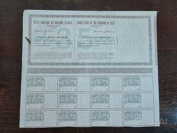 Vendo titolo originale di Debito Pubblico del Regno d’Italia, emesso il 1° luglio 1915, periodo Prima Guerra Mondiale.