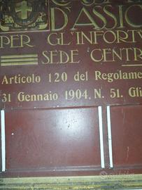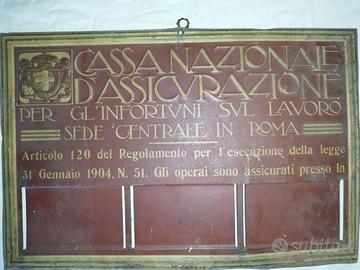 Periodo di interesse storico dal 1904 al 1920 - questa targa è antecedente al regime fascista. Richiama l'art. 120 del Regolamento per l'esecuzione della legge del 31 gennaio 1904. La parte superiore della targa ha la scrittura in rilievo così come lo stemma sabaudo del Regno d'Italia che si vede in alto a sinistra.