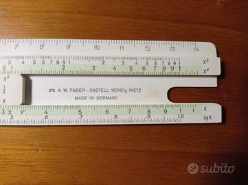 Vendo Regolo calcolatore matematico della Faber-Castell, modello 167/87 g, sistema RIETZ, 10 scale graduate (7 anteriori + 3 posteriori), prodotto in Germania, corredato di custodia originale in cuoio. Condizioni perfette, pari al nuovo. Lunghezza circa 16 cm.
