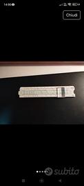 Regolo calcolatore Rietz vintage, un tipo specifico di regolo ampiamente utilizzato per calcoli scientifici e ingegneristici prima dell'avvento delle calcolatrici elettroniche. Il regolo si basa sul "System Rietz", introdotto nel 1902, che ha migliorato il precedente "System Mannheim" aggiungendo scale per funzioni cubiche e logaritmi, rendendo i calcoli più efficienti.