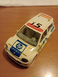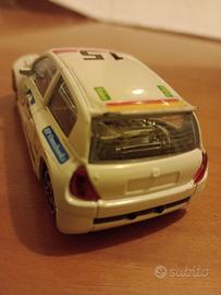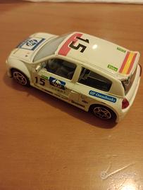 Modello Renault Clio Trophy sport V6 in livrea bianca, motore posteriore 2000 cc. scala 1/43 della Burago.