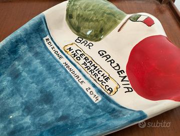 rendi resto celebrativo mondiali di calcio edizione 2014 di ceramica Nino Parrucca fatto a mano made Palermo, articolo del bar Gardenia di Palermo