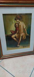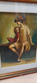 olio su tela Renzo Magnanini "famiglia" misure cm 28/38 cornice cm 56/46 anni 50/60