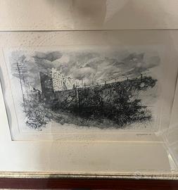 Renzo Vespignani incisione acquaforte IL MURO misure con cornice: cm 60x50 l'opera è pubblicata sul catalogo dell'opera incisoria di VESPIGNANI