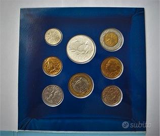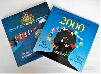 Serie ufficiale completa di monete in Lire della Repubblica di San Marino Divisionale annuale ufficiale del 2000. Elegante confezione numismatica contenente la serie completa di 8 monete. Lire fior di conio (FDC) assoluto, chiuse ermeticamente nel suo folder originale. Il tema della monetazione è dedicata a -VERSO IL TERZO MILLENNIO-V SERIE-L'UOMO E I VALORI ETICI E MORALI- e i valori sono di Lire: 10 -20 - 50 - 100 -200- 500 (bimetallico) - 1000 (bimetallico) - 5000 (argento).
