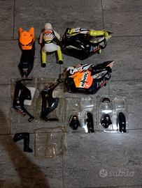 Salve vendo moto in scala 1/5 con motore a scoppio 2 tempi, è un perfetto regalo per un appassionato di motori sia per natale che per il compleanno, la moto non è mai partita però non è grippata perché motore libero, visto che non è mai partita è ancora da rodare e da carburare poi monta su le sospensioni cromate con attacco con il piantone dello sterzo e attacco forcelle blu, tutti i cuscinetti che monta sono quelli maggiorati e rinforzati, come pezzi di ricambio fornisco due set di carene nuove quelle giallo fluo sono ancora da attaccare gli adesivi, poi c'è un'altro set di carene miste fra i due colori, carene replicate come la moto dalla Honda 221v di Valentino Rossi, poi fornisco anche altri svariati pezzi di ricambio, fornisco tre treni di gomme mai montati e quello montato che non ha mai girato come la moto sono 2 treni di stradali e 2 di slick uno montato è l'altro no, fornisco un'altro telaio nuovo di zecca, fornisco i cuscinetti originali e alcuni rinforzati, le piastre originali, ché da rifare lo sterzo perché quello di serie fa schifo fornisco i pezzi, vari pezzi dei servi con altri due servi e i porta batterie, 2 telecomandi uno perfettamente funzionante l'altro da pulire, le forcelle originali che sono opache, la tenichetta e l'imbuto per fare il pieno, un'altra catena con falsa maglia, vari dadini e viti, l'accendi candela e il caricatore dell'accendi candela e le mollete che servono per montare su le carene, fornisco anche tutti i manuali di istruzione uno con il porta fascicoli originale e gli altri due no, accettasi offerte, per maggiori info non esitate a contattarmi