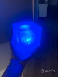 Replica artigianale fatta a mano del Tesserat ovvero il contenitore della prima Gemma dell’infinito vista nei film Marvel dell MCU materiale plastico e LED creato su commissione per cosplay.