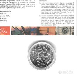 Moneta commemorativa di: Genova Capitale Europea della Cultura. Argento e FdC.