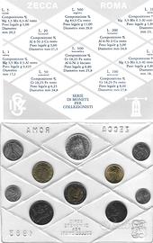 Divisionale completa nei tagli da 1, 2, 5, 10, 20, 50, 100, 200, 500 bimetallica e 500 lire Ag (Caravelle).