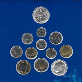 Divisionale completa nei tagli da 1, 2, 5, 10, 20, 50, 100, 200, 500 bimetallica, 500 Ag (Caravelle), 1.000 bimetallica e 1.000 lire Ag (Bernini).
