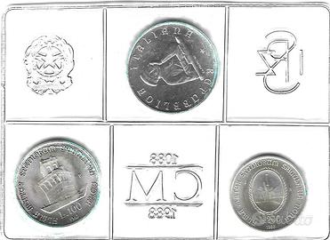 Emesse nel 1988 in argento (FdC) del valore facciale di 10, 200 e 500 lire e celebrative del IX Centenario della Fondazione dell'Università di Bologna.