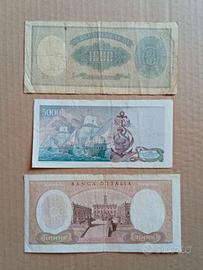 Repubblica Italiana Lotto 3 banconote, circolate 1000 Lire 1947 5000 Lire Colombo II tipo 10000 Lire Michelangelo