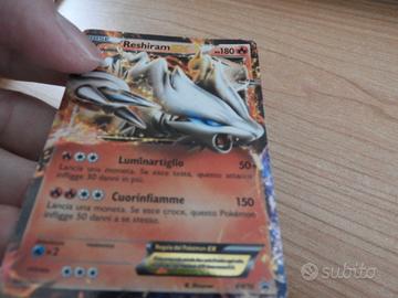Vendo carta Pokemon Reshiram EX BW36 Tin. La carta è in Italiano ed è in condizioni Buone se non per un piccolo difetto come si può vedere nella terza foto, cioè una lieve grinza alla metà della carta che la passa da sinistra a destra. Posso spedire. Prezzo 1€. Non accetto TuttoSubito. Posso scambiare con carte Pokemon o yugi. Per qualsiasi info non esitate a chiedere!!