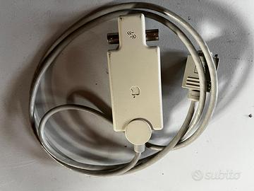 Apple Ethernet Thin Coax Transceiver M0329 - Vintage AAUI Adapter - 1994 In vendita un raro Apple Ethernet Thin Coax Transceiver (Modello M0329). Questo dispositivo permetteva di convertire la porta proprietaria Apple AAUI (Apple Attachment Unit Interface) in un'interfaccia 10BASE2 (Thinnet) per reti locali su cavo coassiale. Un pezzo fondamentale per chiunque stia restaurando un setup di rete vintage Apple della metà degli anni '90. Caratteristiche Tecniche: Produttore: Apple Computer, Inc. Modello: M0329 (Made in U.S.A.). Connettori: 1x AAUI (per il computer) e 1x BNC (per la rete coassiale). Standard di rete: Ethernet 10 Mbps. Anno di produzione: © 1994. Condizioni dell'oggetto: Estetica: Molto buone. Il guscio in plastica color platino è ben conservato e presenta pochissimi segni di invecchiamento. L'etichetta posteriore è perfetta e leggibile. Cavo: Il cavo di collegamento è integro e non presenta tagli o irrigidimenti. Funzionamento: Non testato (venduto come oggetto da collezione). Compatibilità: Compatibile con tutti i modelli Apple dotati di porta AAUI, tra cui: Macintosh Quadra (700, 800, 900, 950, ecc.). Macintosh Centris. Power Macintosh serie 6100, 7100, 8100. Alcune stampanti LaserWriter.