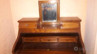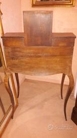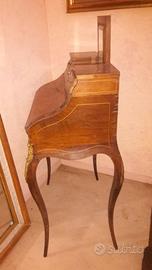 -RIBALTINA FRANCESE D' EPOCA NAPOLEONE III DELLA SECONDA META' 800,CON FILETTATURA ED INTARSIO DI CARATTERE FLOREALE IN ACERO.PRESENTA UNO SPECCHIO NELLA PARTE CENTRALE CON SPECCHIO ORIGINALE D'EPOCA.ALL' INTERNO VI E' UNO SCARABATTOLO COMPOSTO DA CASSETTINI FILETTATI E UN DOPPIO PIANO APRIBILE.LA RIBALTINA E' ARRICCHITA DA ELEMENTI DECORATIVI IN BRONZO DORATO.