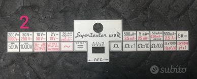 VENDO Targhette indicazioni delle portate per multimetro analogico mod. 680R 4a e 6a serie . Scegliere 1 o 2 per il modello interessato contattandomi prima dell'acquisto, così da inviare l'oggetto scelto.