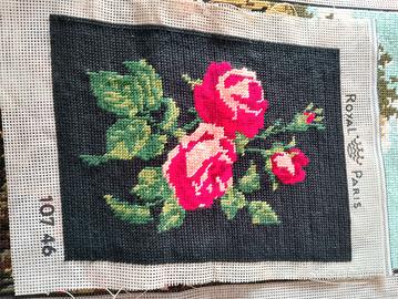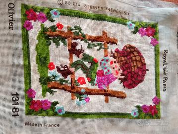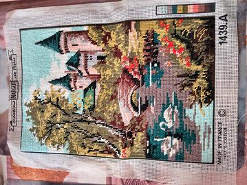 n 5 tele di ricami a mano punto croce personaggi francese molto belli. Ritiro in loco.