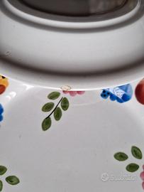 in ceramica bianca con decori a fiori dipinti a mano in policromia.