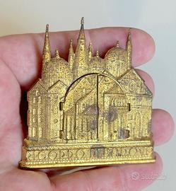 Vecchio Souvenir Ricordo di Padova Basilica di Sant'Antonio 6 x 6 cm (circa) in buone condizioni con segni del tempo